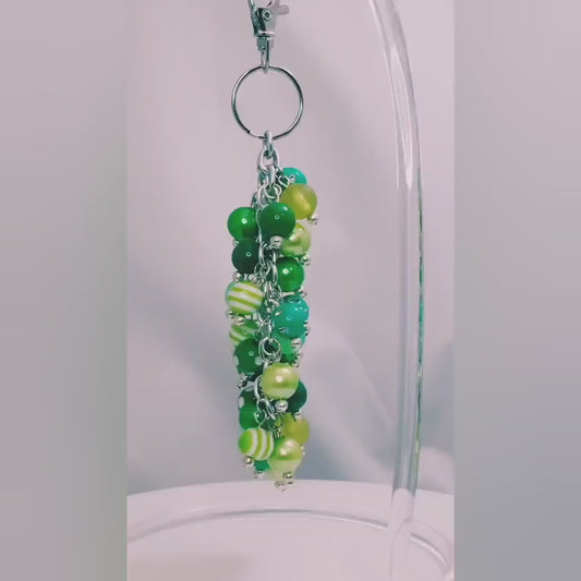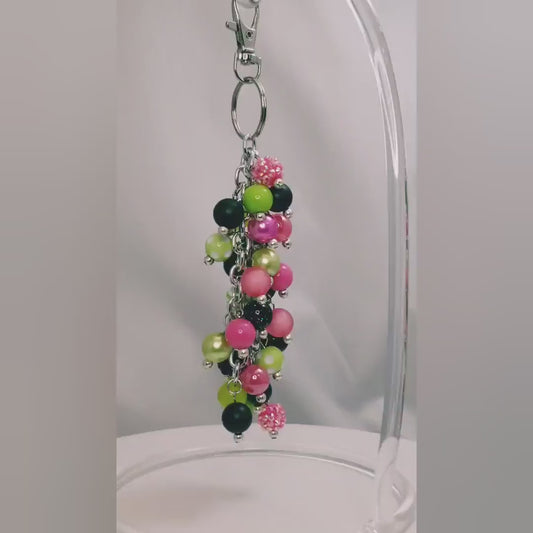 Add some sparkle to you favorite bag with a glittery mini purse charm. Made with 15 acrylic beads and stainless steel. Made to last.