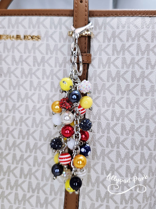 Add some sparkle to you favorite bag with a glittery purse charm. Made with 30 acrylic beads and stainless steel. Made to last.