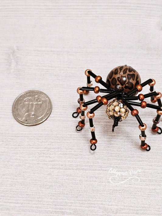Cheetah Brown and Black Beaded Spider, Halloween Spider