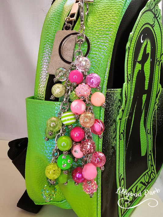 Green and Pink Luxury bag charm, Wicked Purse charm for Handbags